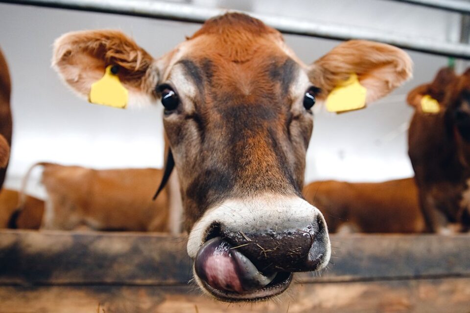 FEATURED IMAGE: A red Jersey cow stands in New Zealand dairy farm stall eating, photo by Parilov from Adobe Stock.