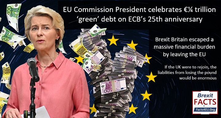EU Commission President celebrates €¼ trillion ‘green’ debt on ECB’s 25th anniversary