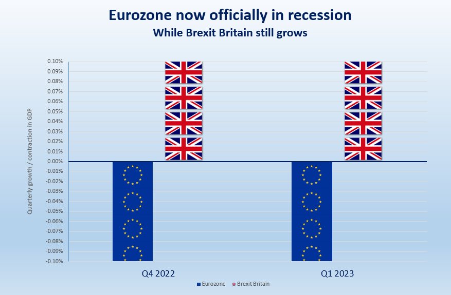 Oops – Eurozone now officially in recession, while Brexit Britain still grows