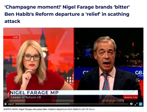 Nigel Farage described Ben Habib’s departure from Reform UK as a “champagne moment” and “absolute icing on the cake” in a frank interview on GB News.